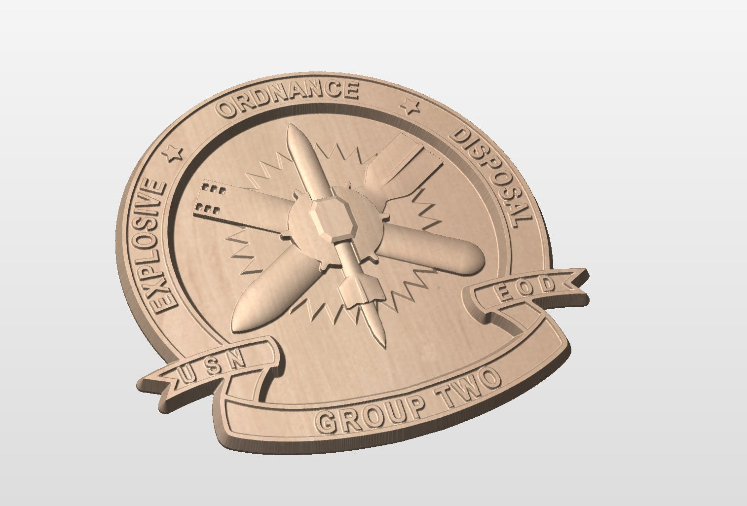 Celebrate your time in service as a member of EOD Group Two with a Junk in the Sun custom carving! Great way to celebrate your own service or as a gift for a retirement, graduation, or shadowbox adornment. Display it hanging on a wall, or on a display rack on a bookshelf. The wood will be carved out of cherry lumber with an all natural stain designed to highlight the beauty of the wood itself. Design depictions are digital representations of the final product. For custom text, or other requests please reach out directly via the custom product page or our instagram @freeflyingwoodworks. Product Delivery ~3-4 weeks.