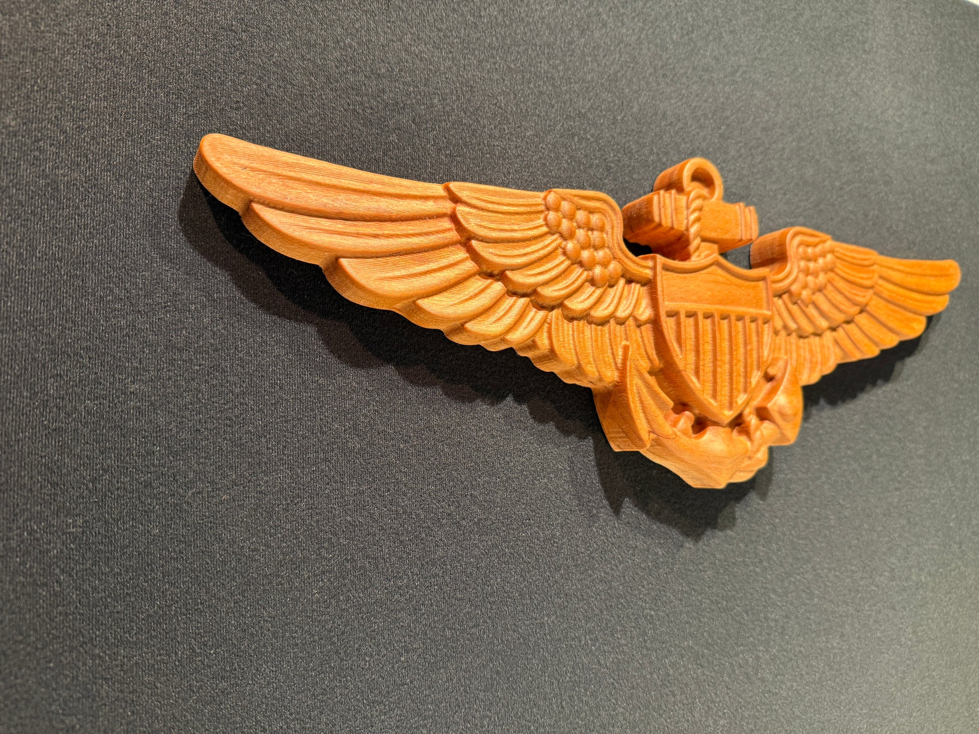 Remember your years of aviation memories by displaying your patches with our custom set of Naval Aviator wings on a handcrafted display board! Carefully crafted and designed to showcase your passion for aviation, this patchboard is a must-have for any Naval Aviator. A perfect gift to celebrate a winging, retirement, or simply a way to display your aviation heritage. Wings are made of American cherry wood with a natural stained finish to highlight the beauty of each piece of wood. Made to Order. Current production time: Framed: 1-2 weeks, Unframed: 5-7 days, Callsign/Name Plates add ~1 day